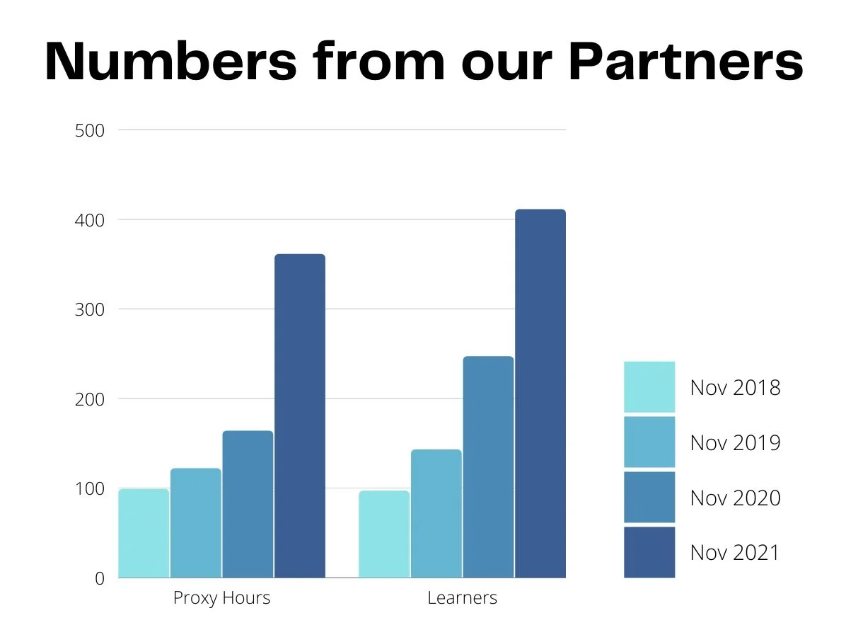 There are our partners: Cara Collective and Communidades Latinas Unidas en Servicio (CLUES) who introduced GogyUp to their adult learners and generated a 221% increase in proxy hours this year!